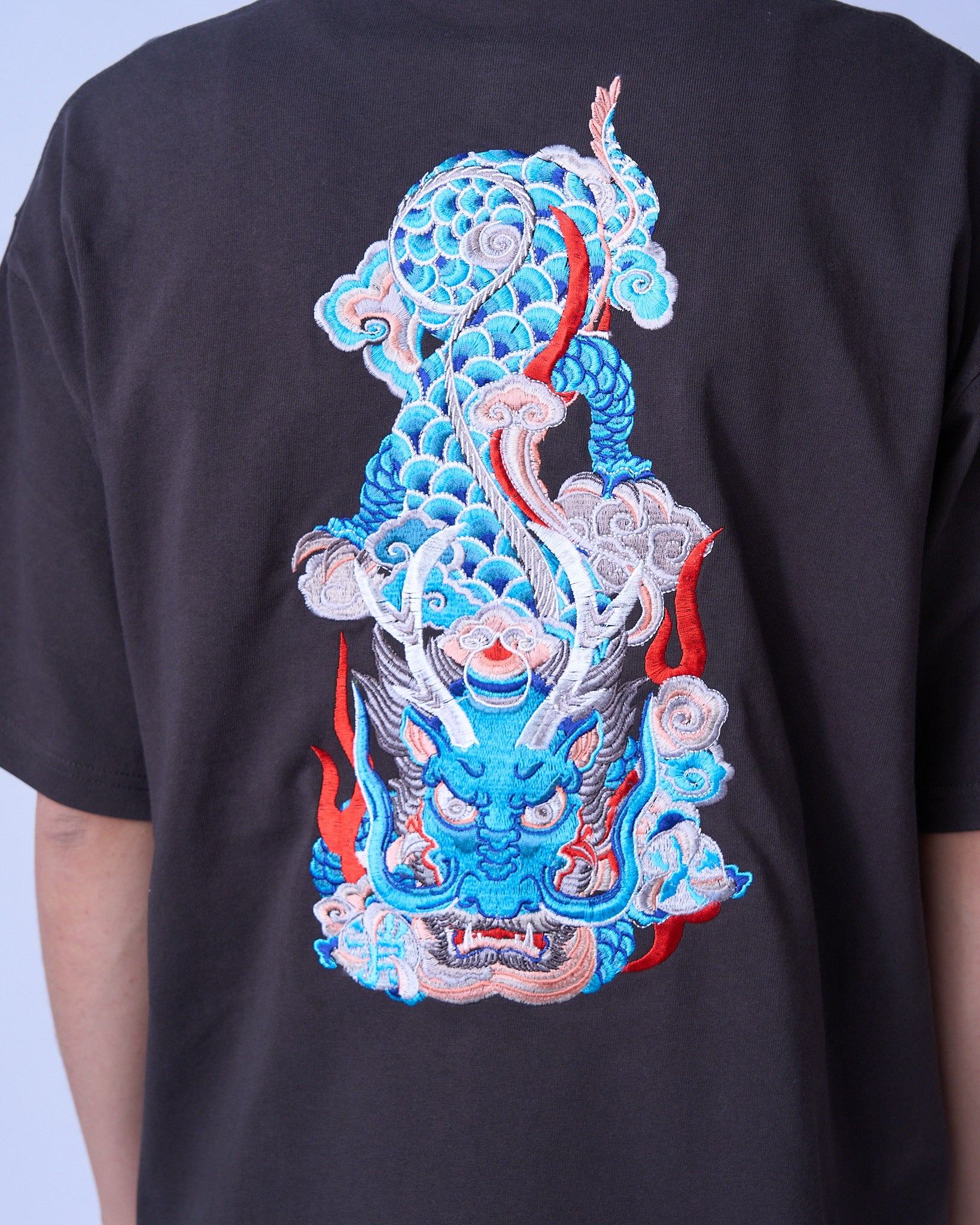 絵描きユニット『だるま商店』 @dalma.graphicにより描かれたアート作品。 ふんだんにあしらった刺繍との相性が良い厚手かつオーバーサイズのTシャツで表現。