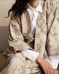 将这一设计图案交由染织布料制造商「丸萬」制作成提花布料,制作出既高档又轻盈柔软的顶级布料。