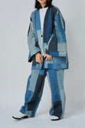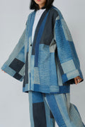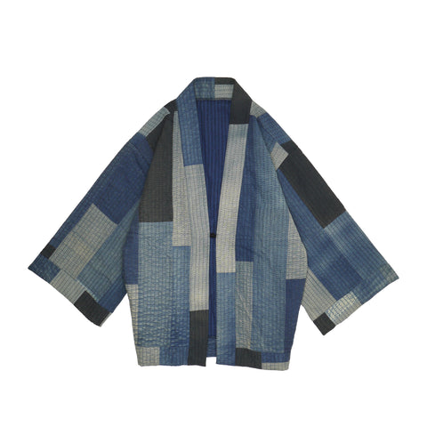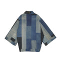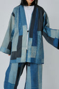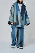 本款RIKYU型半纏採用以襤褸為靈感,透過拼布與刺子工藝表現的原創布料製作而成。